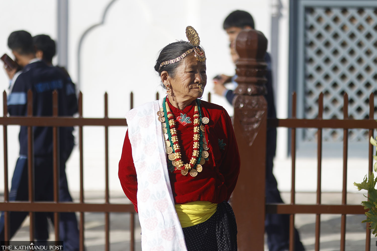 A woman in cultural attire at Basantapur Durbar Square on Friday. Suryams Upreti/TKP