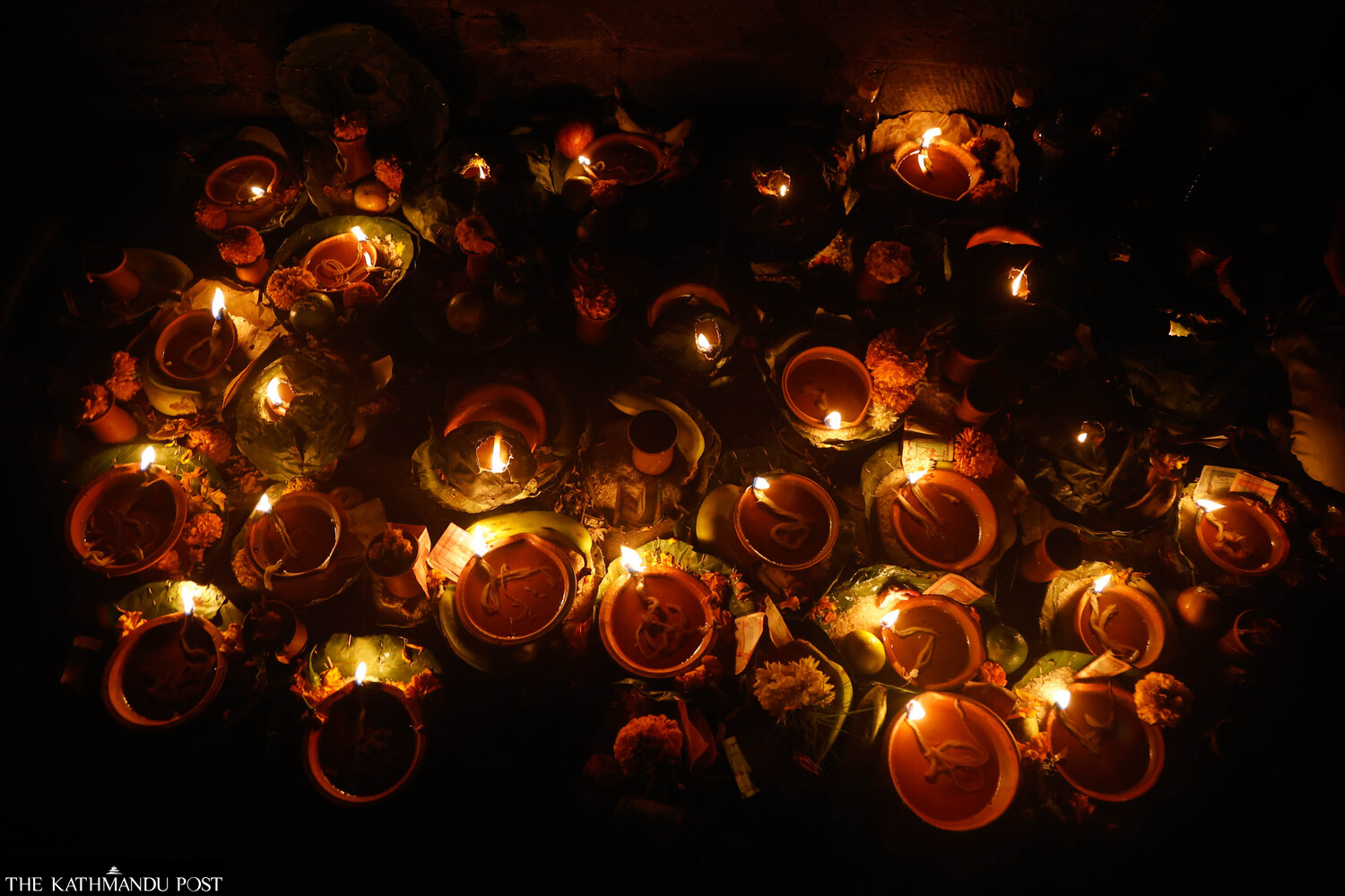 Hindu worshippers observed rituals on Wednesday, offering grains and lighting lamps in memory of their deceased family members at the Pashupatinath temple.
