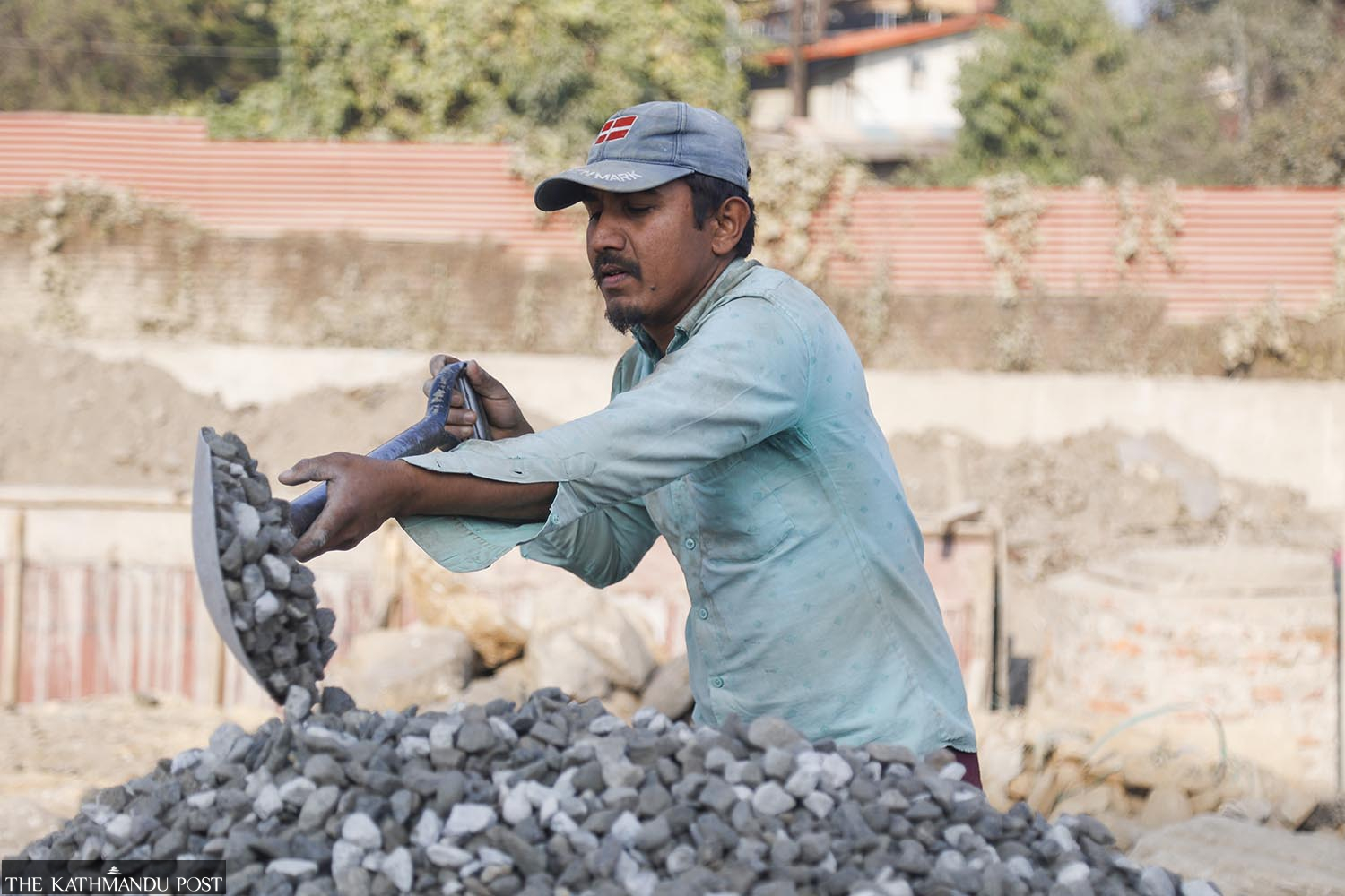A man at work on the Chappal Karkhana-Maharajgunj stretch of the Ring Road in Kathmandu recently. Suryams Upreti/TKP