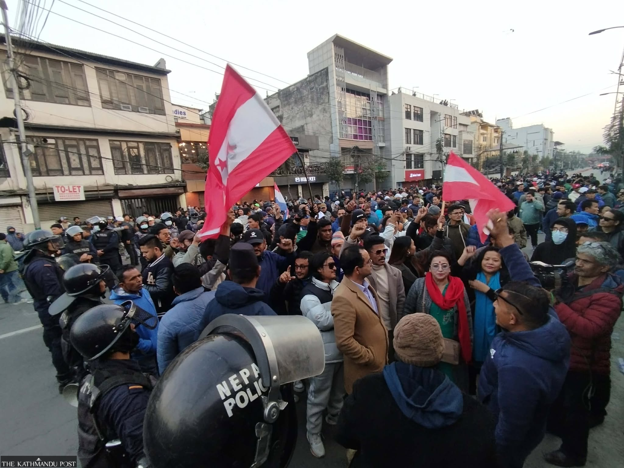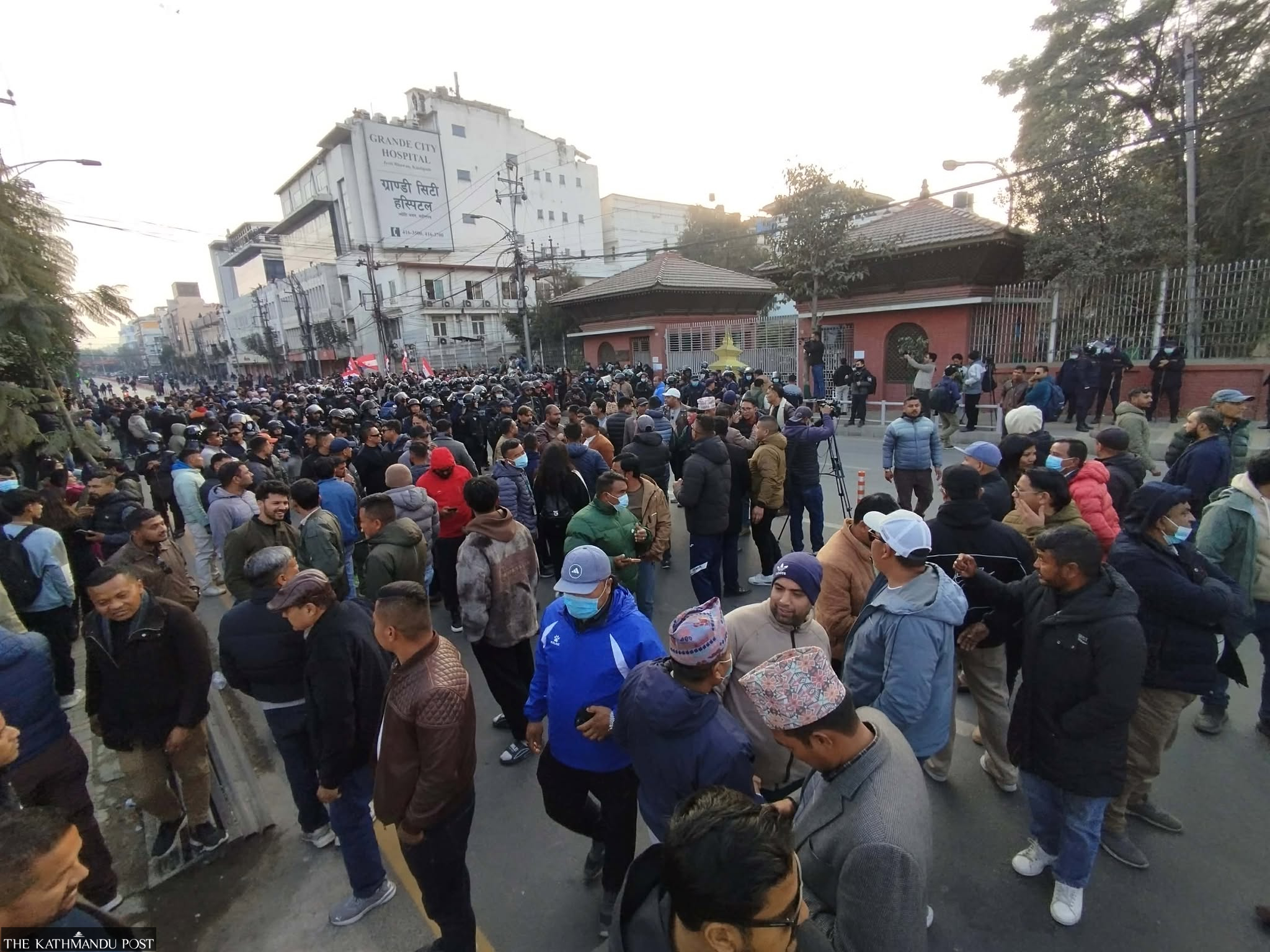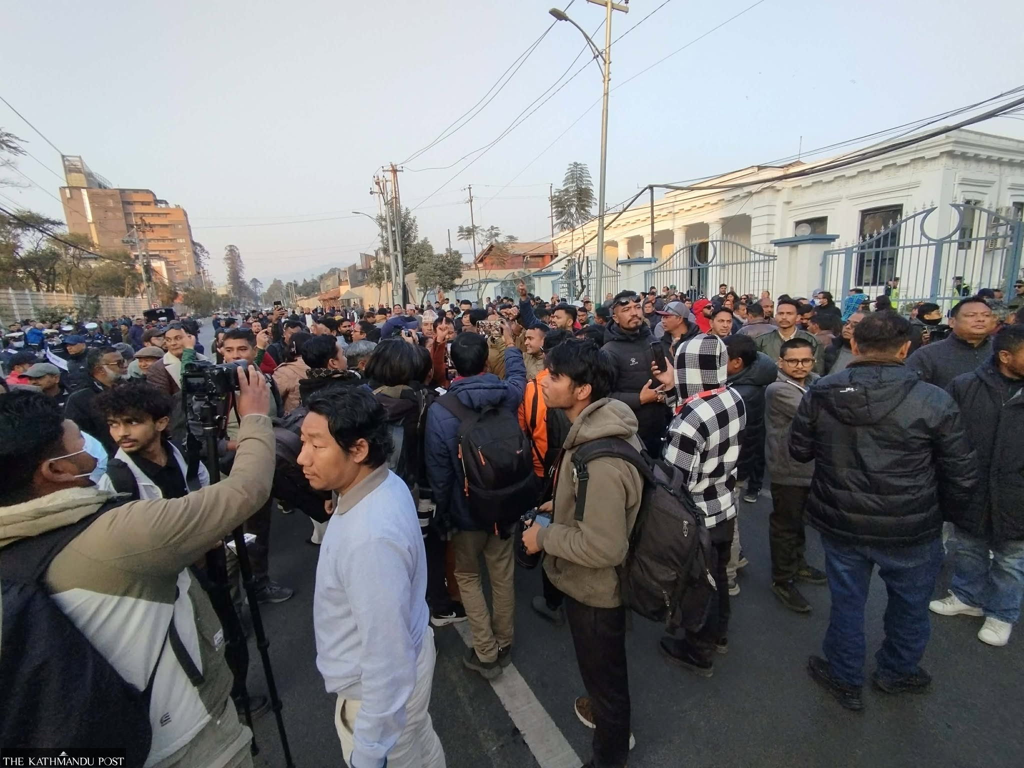 Supporters loyal to the Sher Bahadur Deuba-led Congress staged protests outside the office, blocking the road, while Thapa group members had been staging a sit-in inside the premises since earlier in the day. Cadres from the party’s central office in Sanepa joined the protests outside.