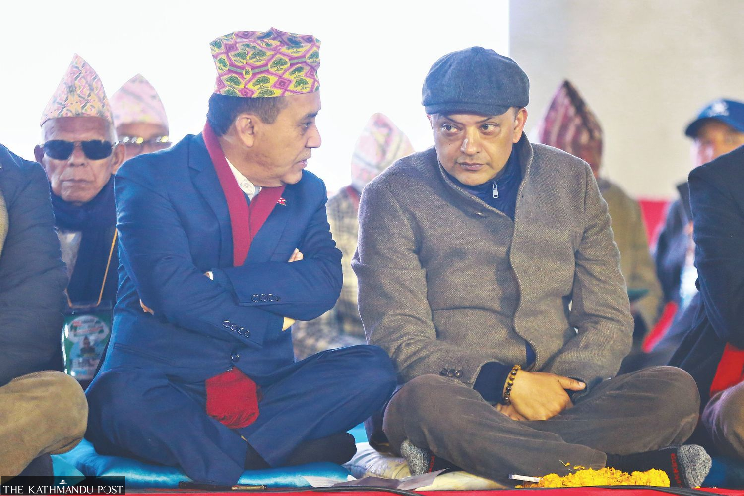 Nepali Congress general secretaries Bishwa Prakash Sharma and Gagan Thapa attend the special general convention in Kathmandu on Tuesday POST PHOTO: DIPEN SHRESTHA