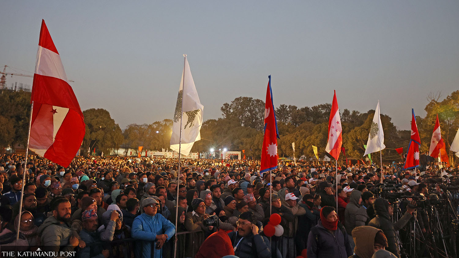 Participants of the Nepali Congress’ second special general convention pictured at Bhrikutimandap in Kathmandu on Sunday evening. Hemanta Shrestha/TKP