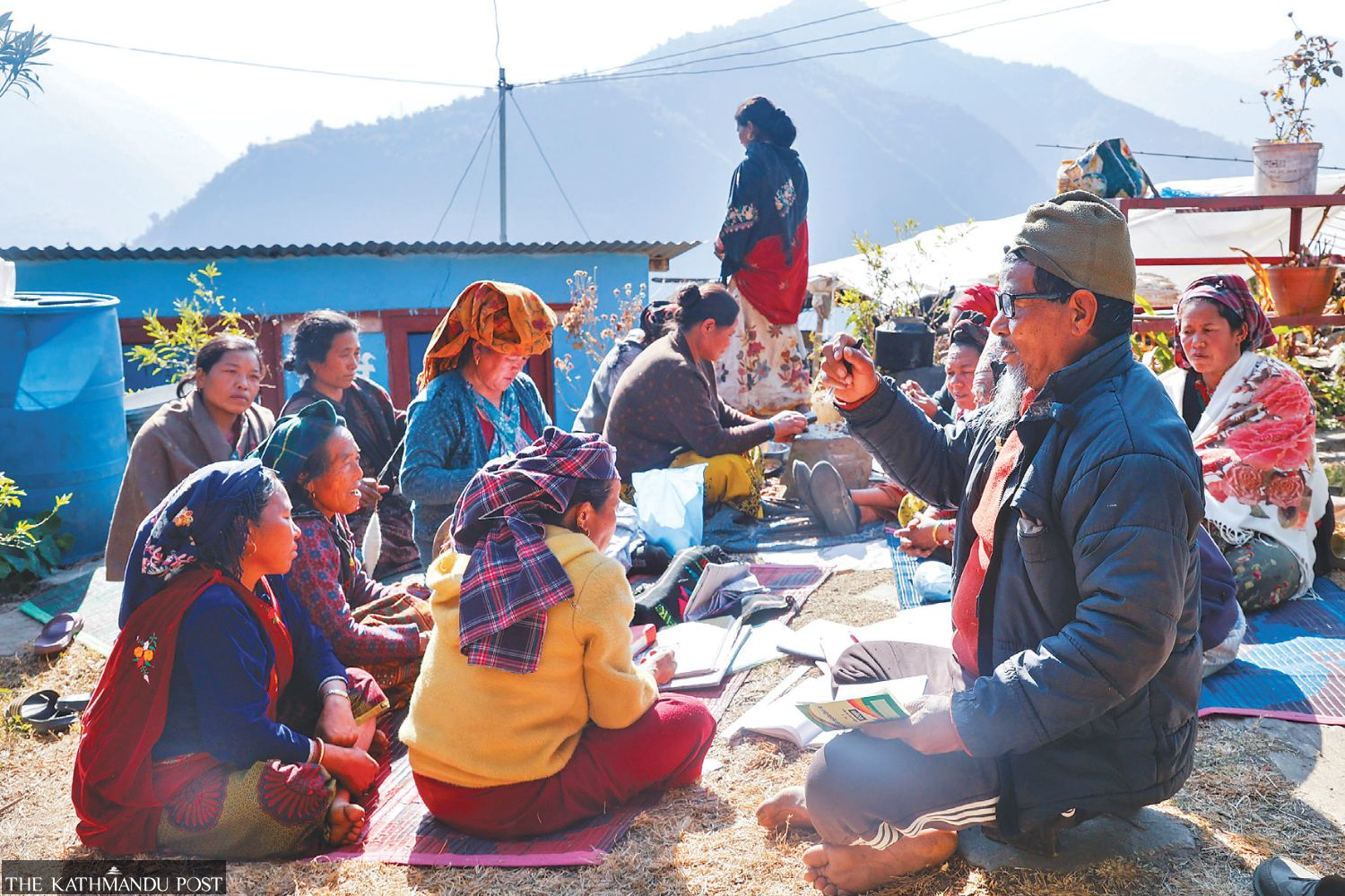 A village elder chairs a meeting of a farmers’ group at Mahatgaun in Bhume Rural Municipality, Rukum East on Thursday. Post Photo: Hemanta Shrestha