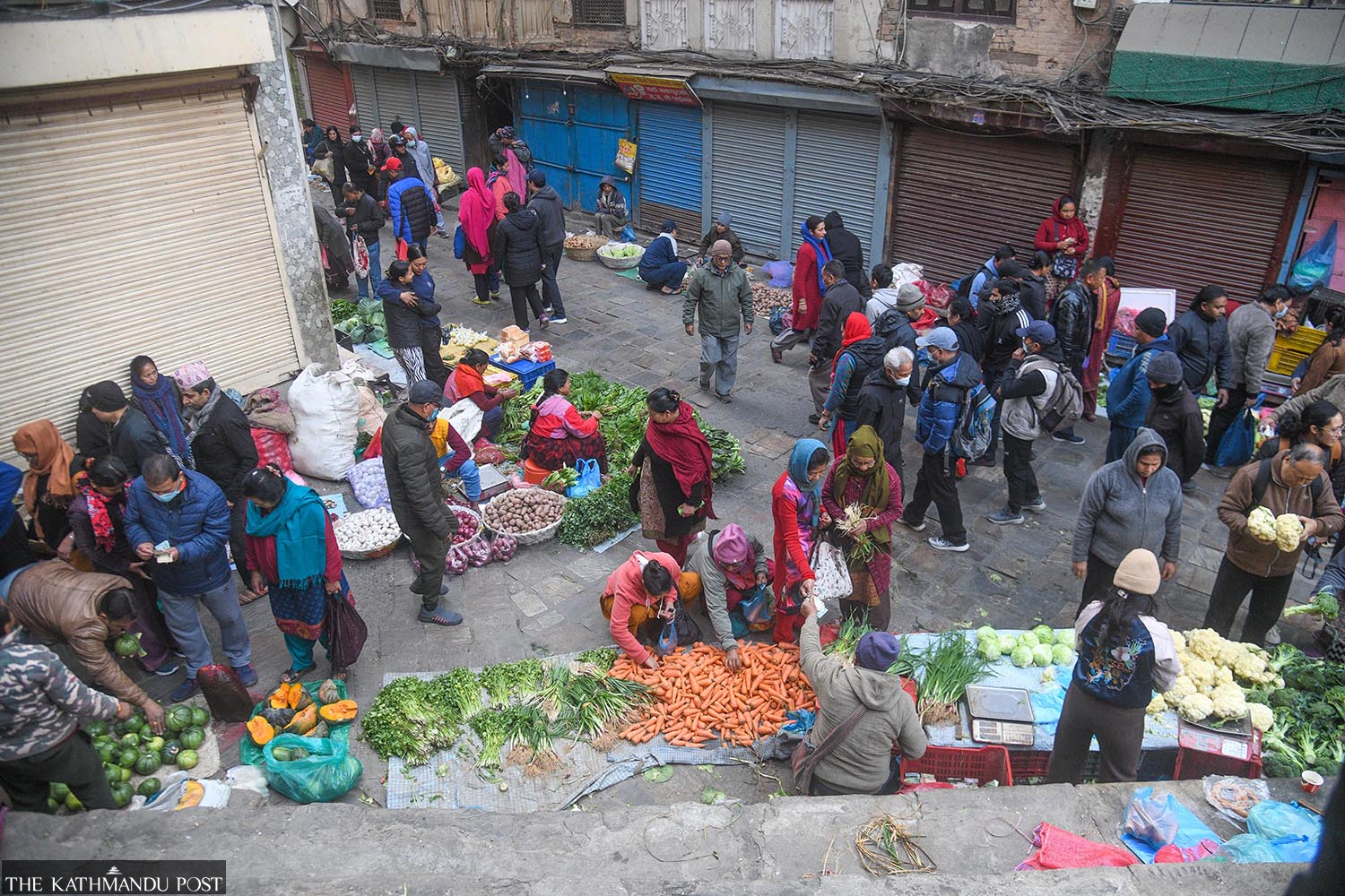People buy vegetables at Indrachowk in Kathmandu on Thursday morning. Deepak KC/TKP
