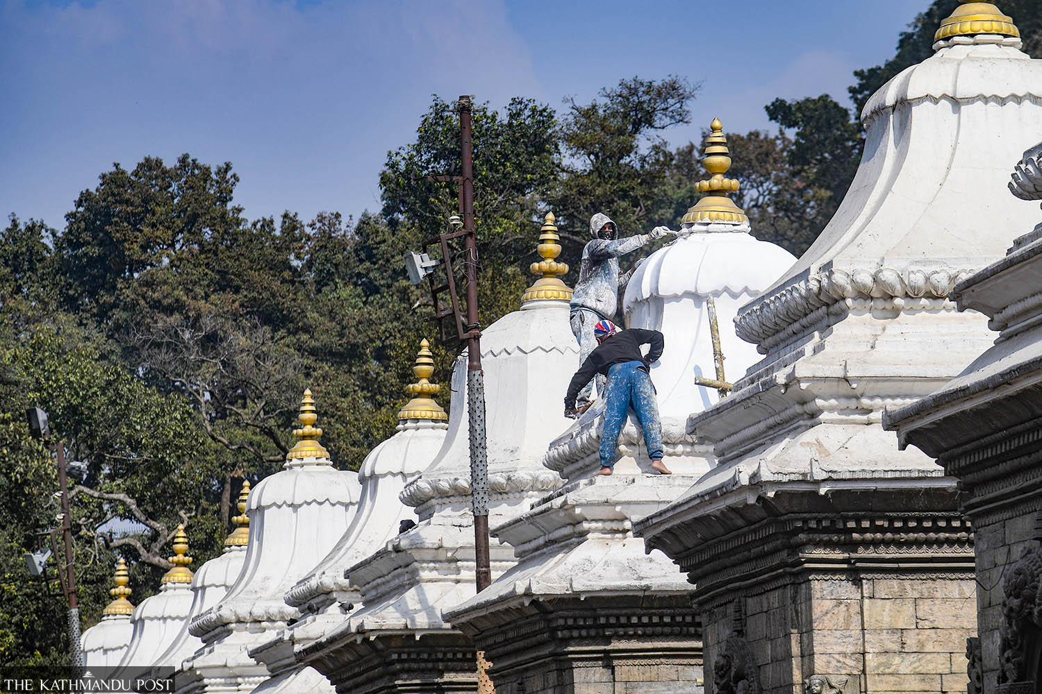 Shrines in the Pashupatinath area, opposite the main temple across Bagmati River in Kathmandu, get a facelift on Wednesday in preparation for the Shivaratri festival, which falls next week. Deepak KC/TKP