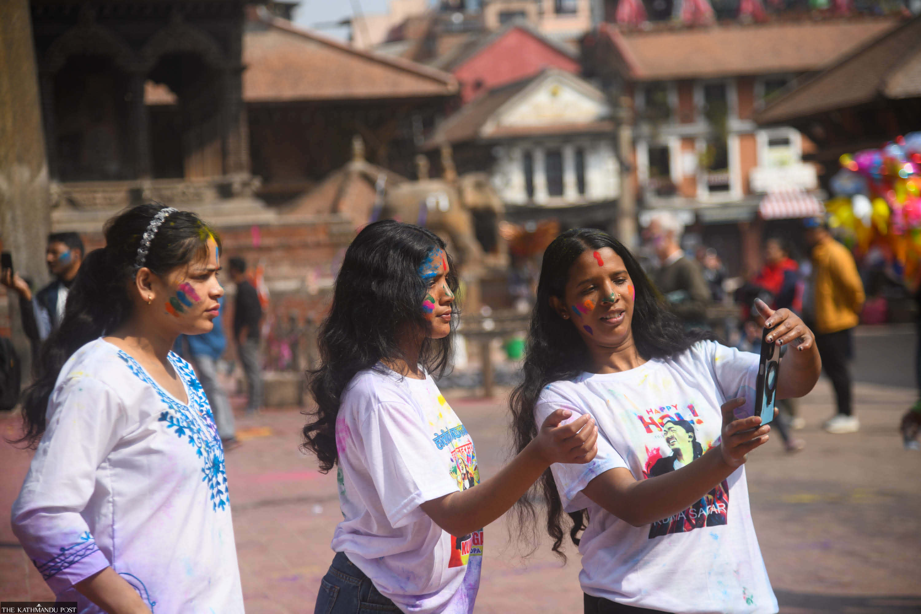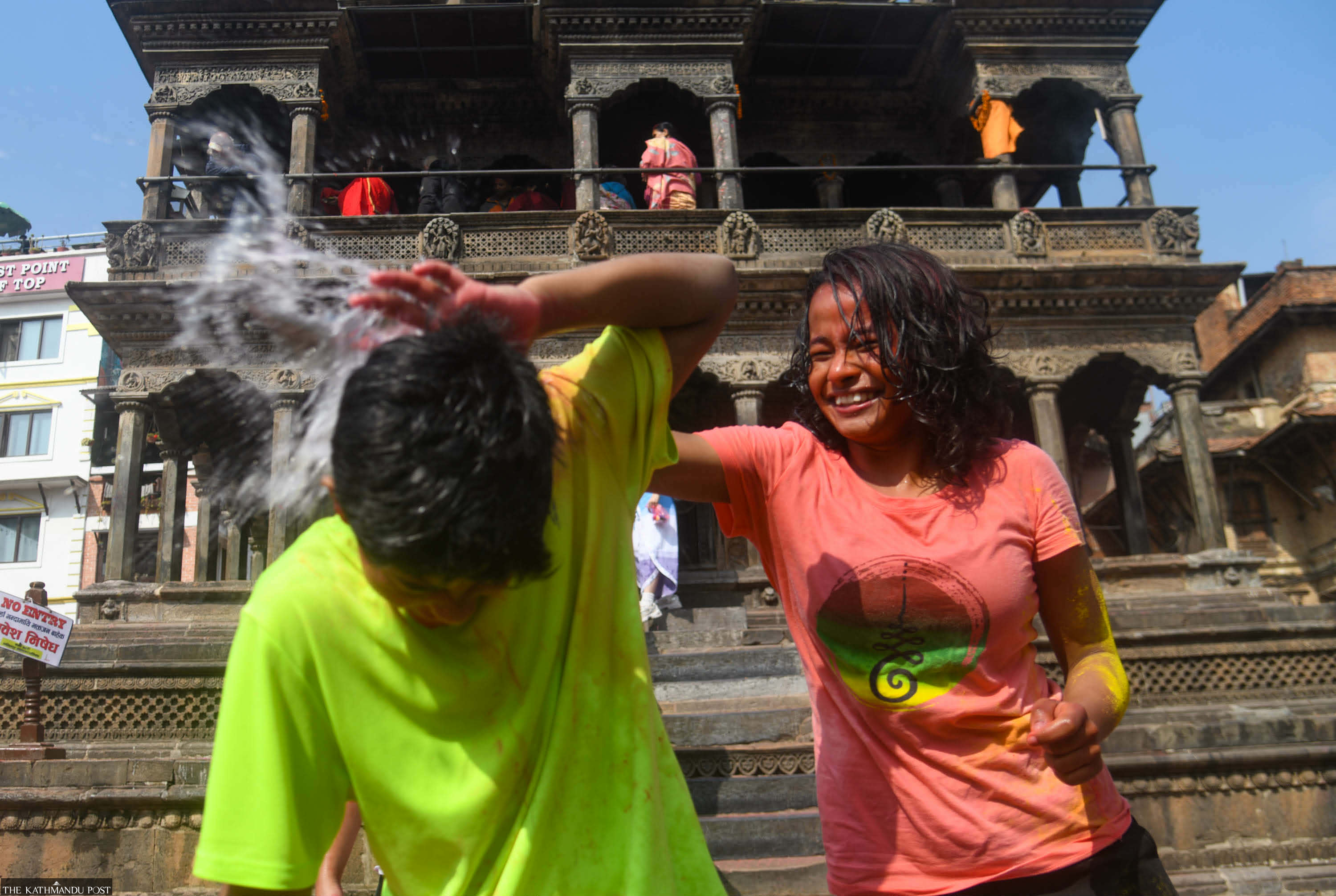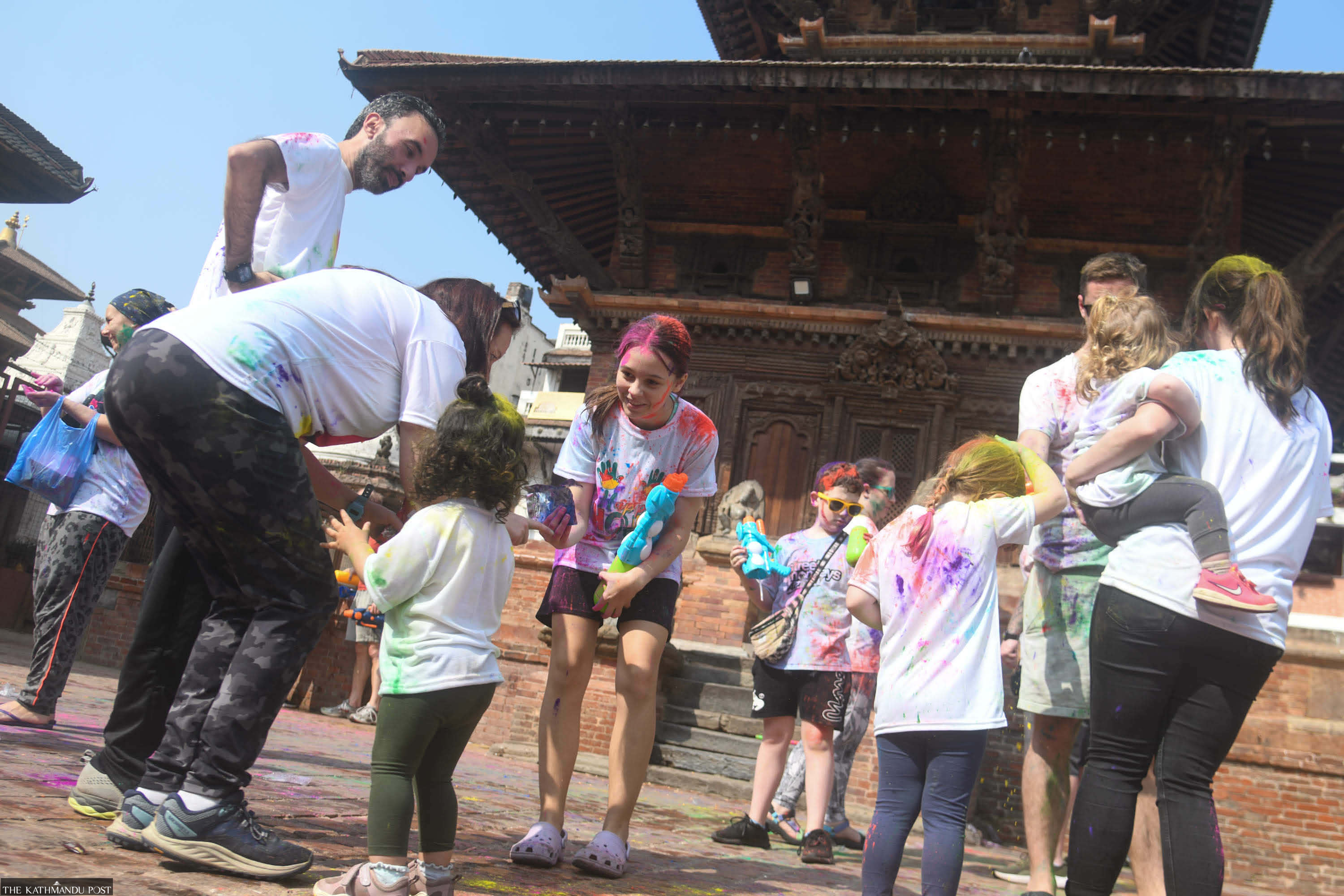 Here are some photos of Holi celebrations at Patan Durbar Square taken by the Post’s photojournalist Deepak KC.