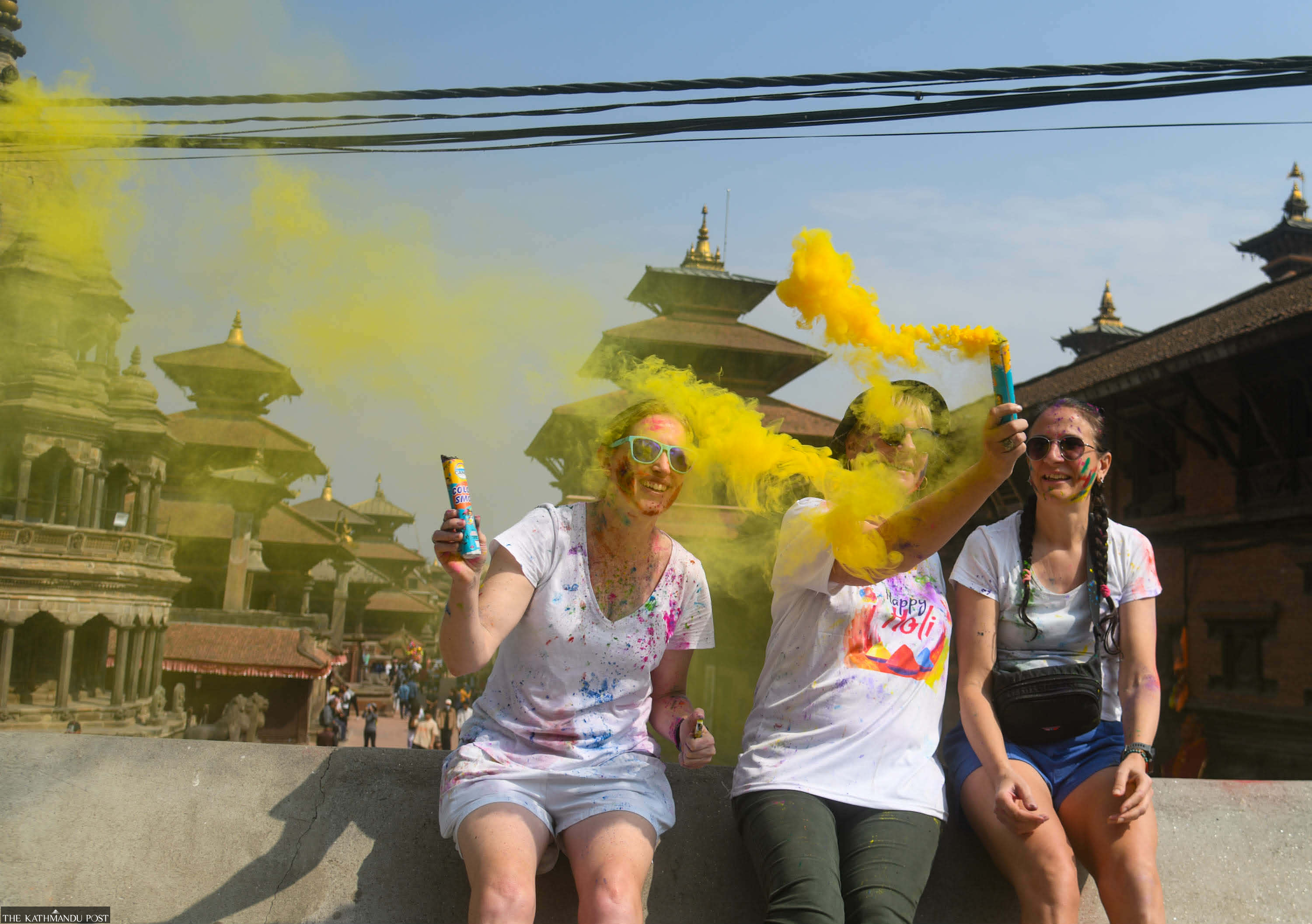 The government has declared a public holiday in the mountain and hilly districts. In the Tarai, Holi is observed the day after the full moon, and a holiday has been announced there for Tuesday.