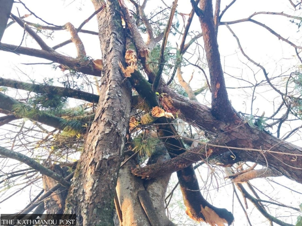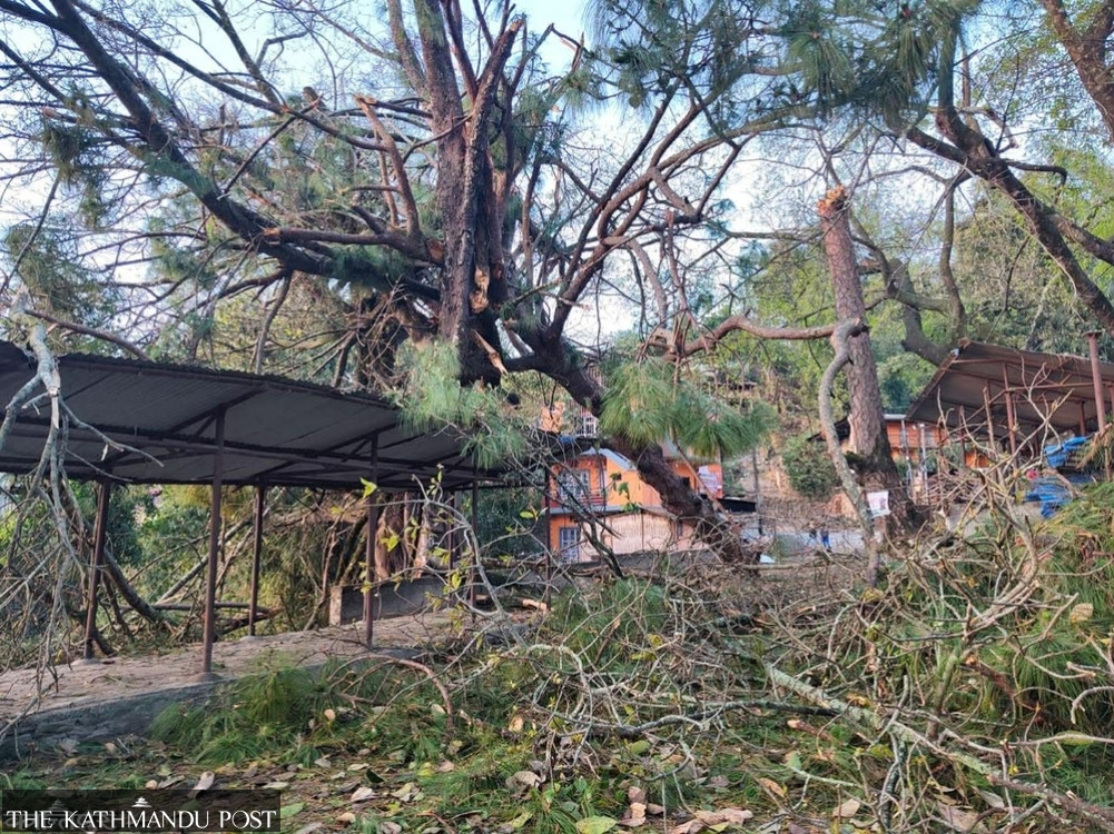 Areas including Sidhuwa, Jorpati, Hile, and the district headquarters have reported major damage, while around 100 large pine trees were uprooted in the Salleri National Forest in Dhankuta, blocking inner roads.