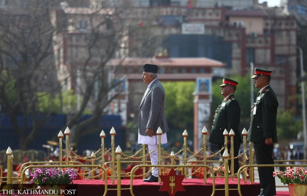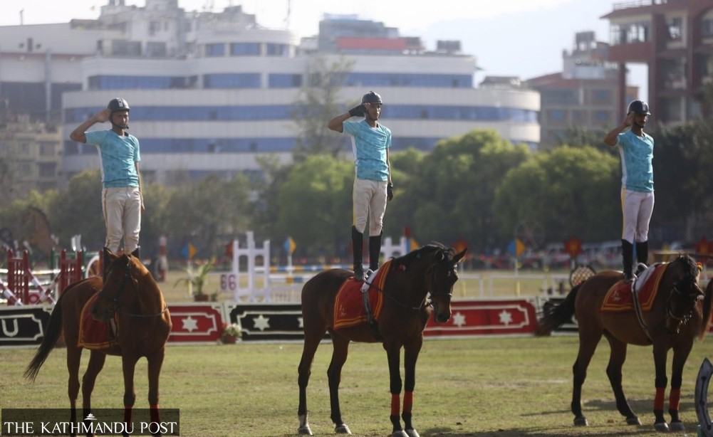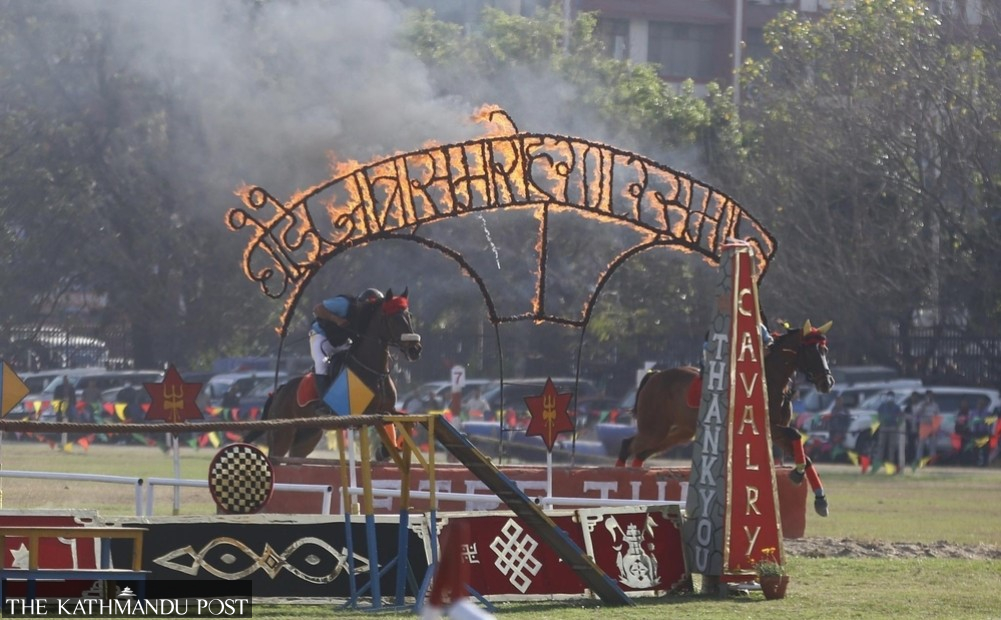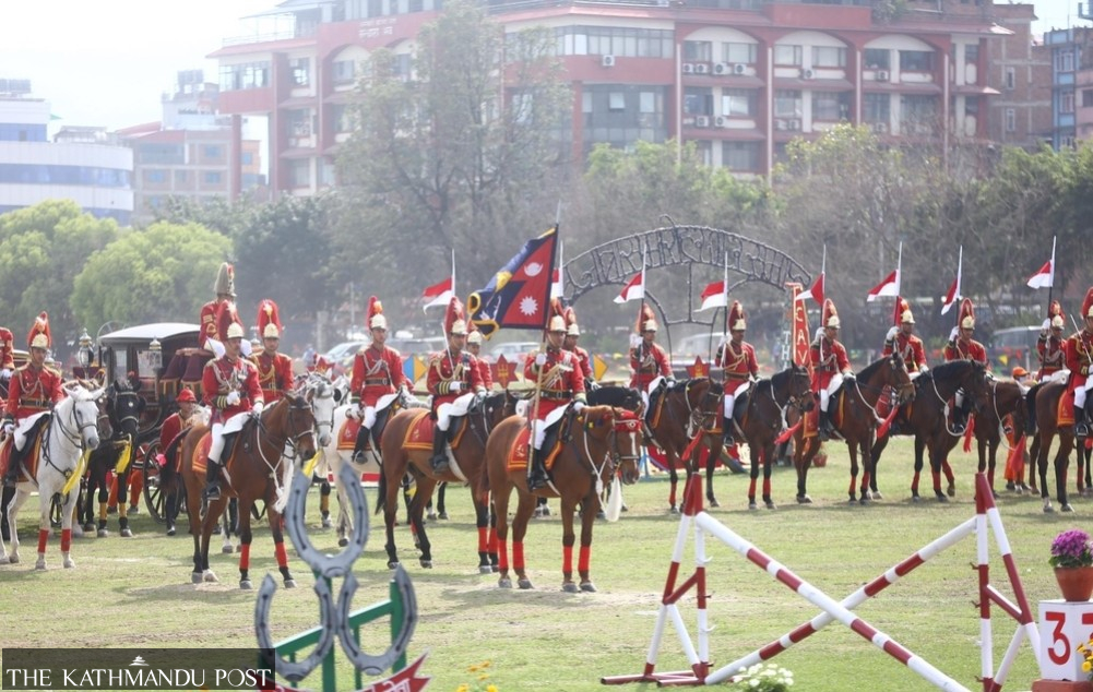 President and top leaders attend as Nepali Army stages equestrian displays in Kathmandu Valley.