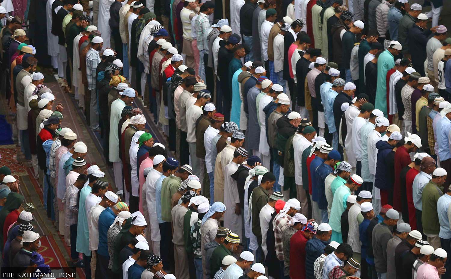 Muslim faithful gather at Jame Masjid in Kathmandu on Saturday, to offer prayers on Eid ul-Fitr, which marks the end of the holy month of Ramadan. Dipen Shrestha/TKP