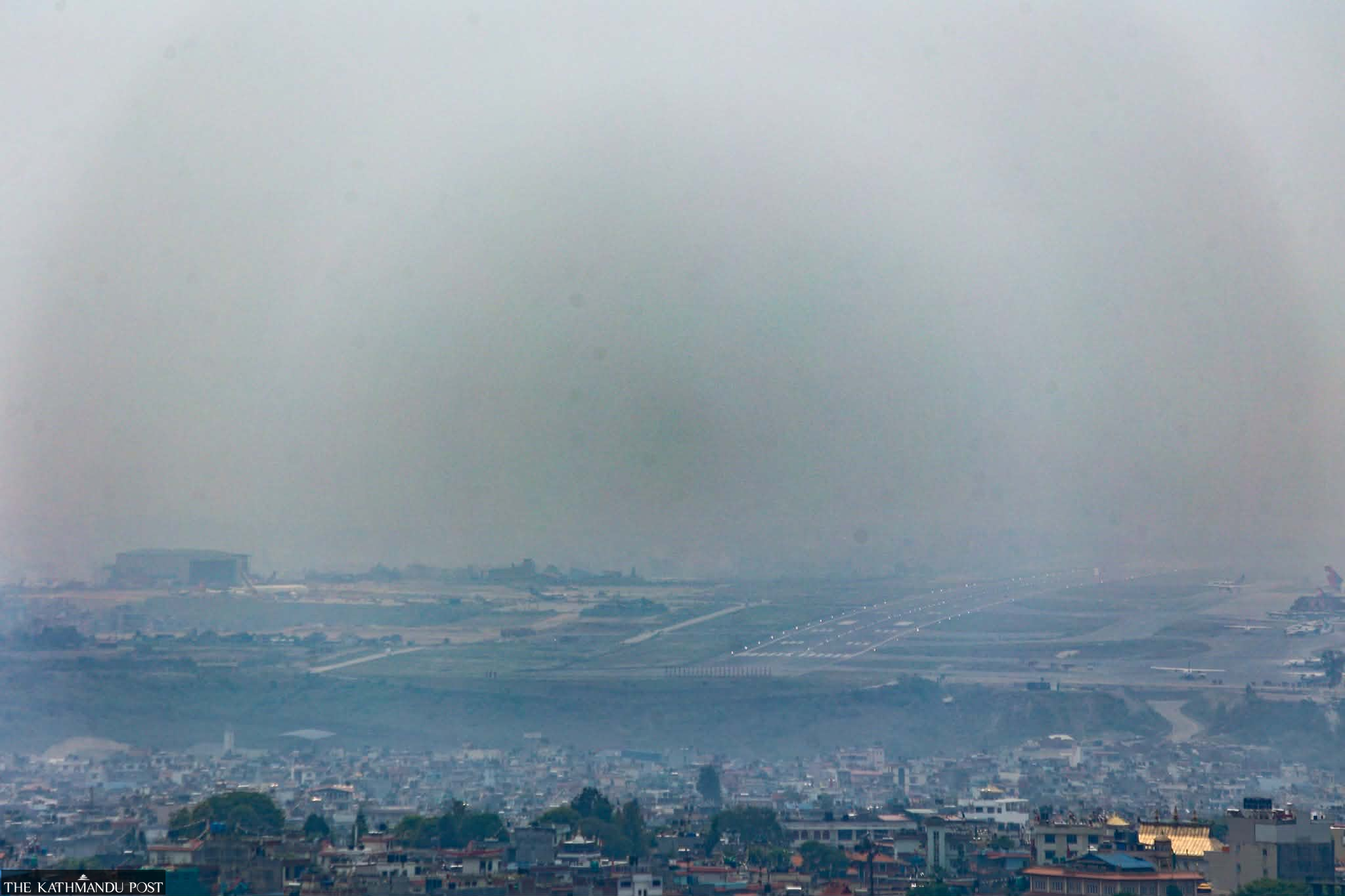 A thick grey haze has blanketed the Valley, sharply reducing visibility and obscuring the surrounding hills. Conditions have also affected operations at Tribhuvan International Airport, where visibility dropped significantly.