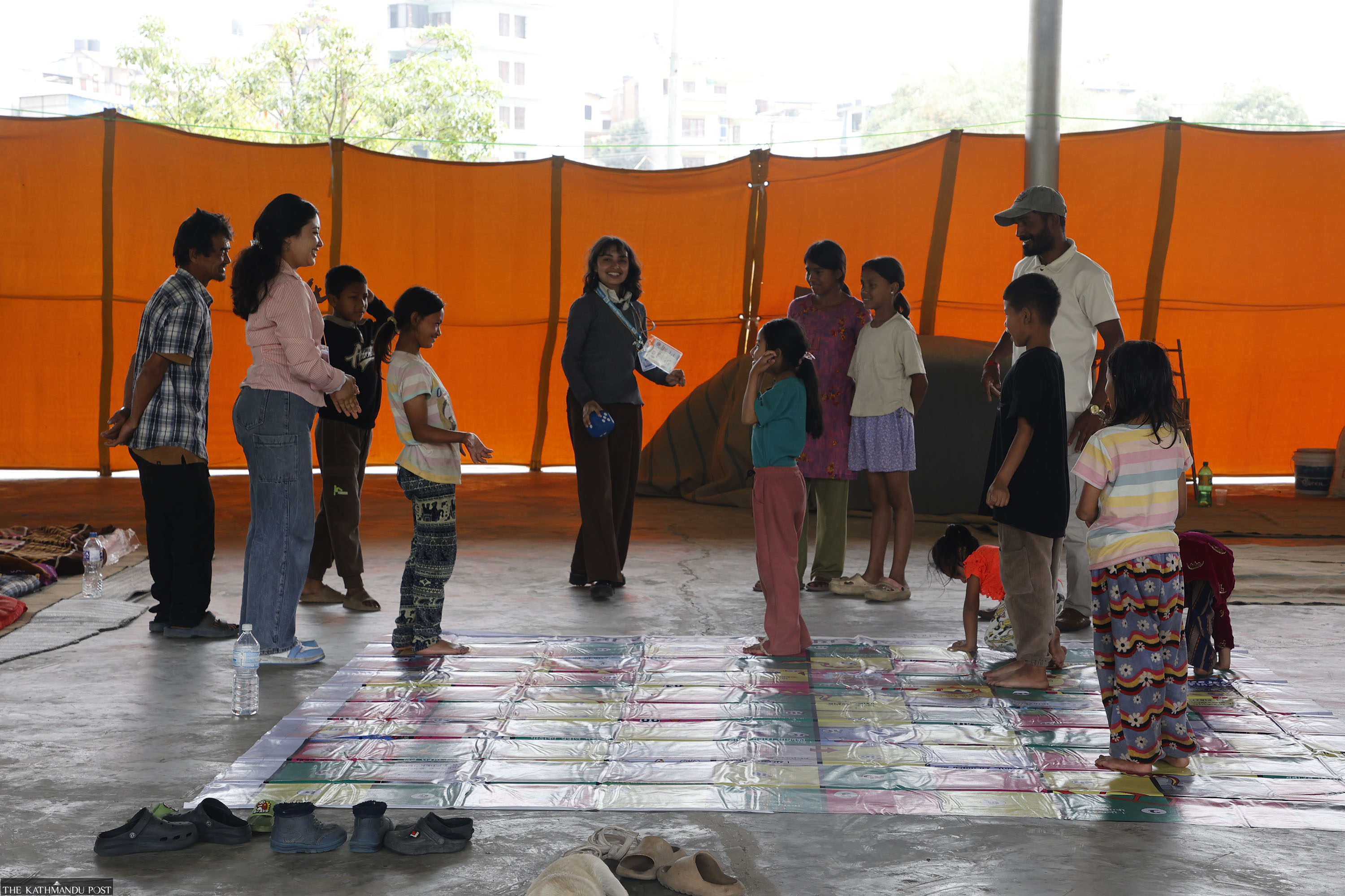 Basic services were in place. Two doctors assigned by the metropolitan office conducted health check-ups, while volunteers kept children occupied with games. Water supply and toilets appeared adequate, and sanitation workers maintained cleanliness.