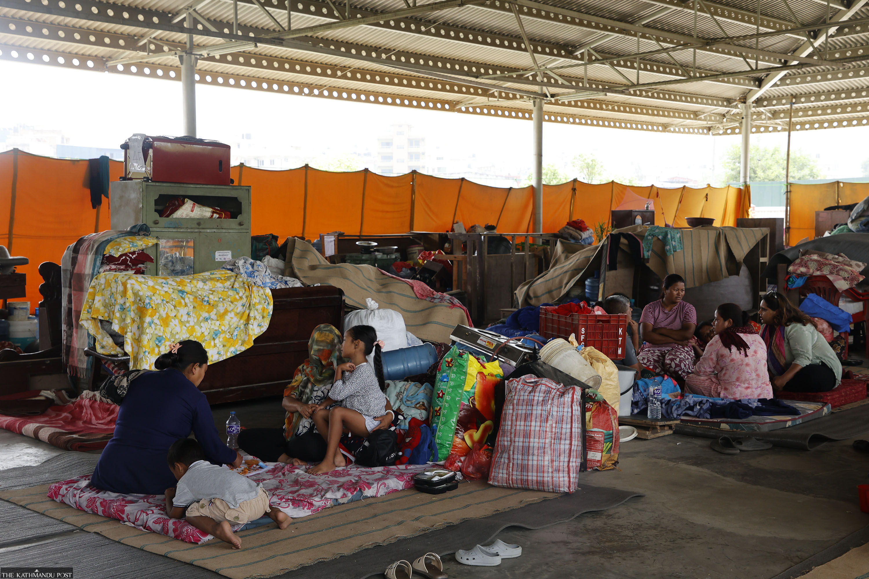 At 9am on Monday, families displaced by Kathmandu’s recent eviction drive were crowded into a temporary shelter at Sundarighat in Kirtipur. Inside the Radha Soami Satsang Beas Nepal premises, some sorted through scattered belongings while others spread thin mats across the floor to set up a sleeping space.