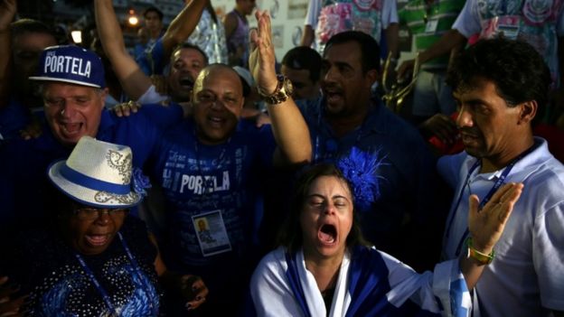 Thousands of supporters began celebrating as soon as the final mark was read out at Rio's Sambadrome.