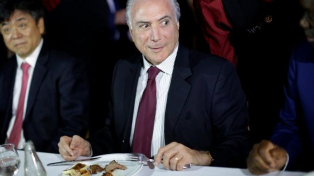 President Michel Temer held emergency meetings over the weekend and even invited foreign diplomats to a steak house on Sunday evening to try to reassure them.