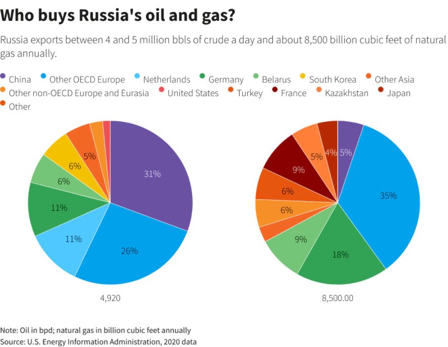 Biden has been working with allies in Europe, who are far more dependent on Russian oil, to isolate Russia’s energy-heavy economy and Putin.Reuters