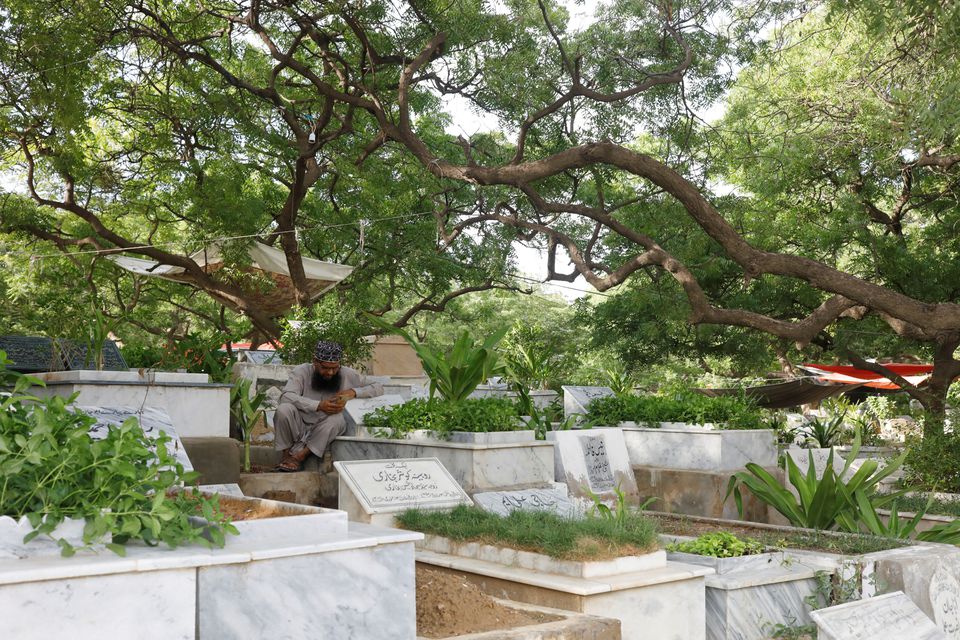 Mohammad Jahangir, 35, is a caretaker there who waters the plants for a small cash donation from relatives who seeded them. Viewed from above, the graveyard is a sea of green that stands out against a low-rise neighbourhood.