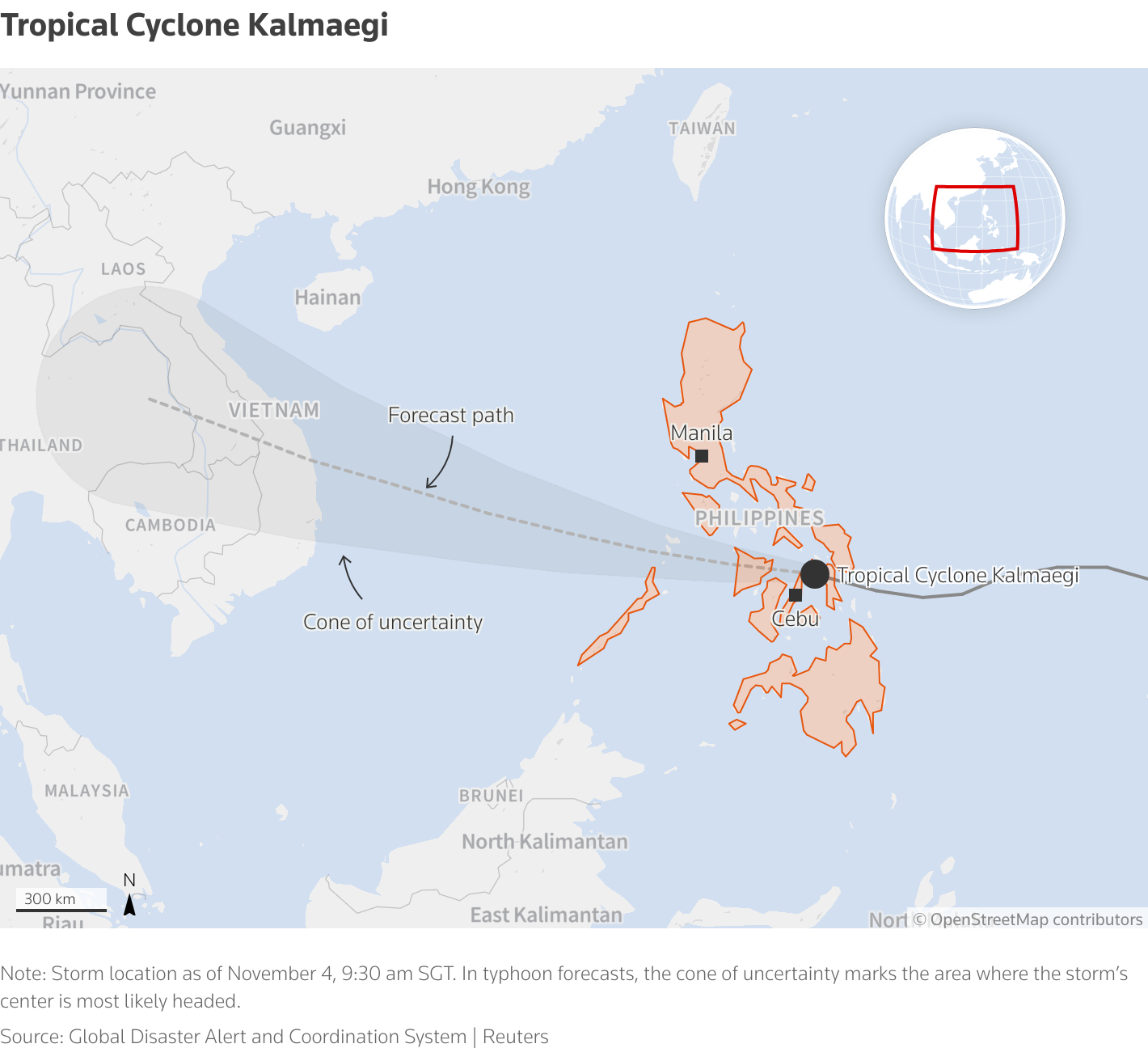 Typhoon Kalmaegi kills at least 58 in the Philippines, heads toward Vietnam